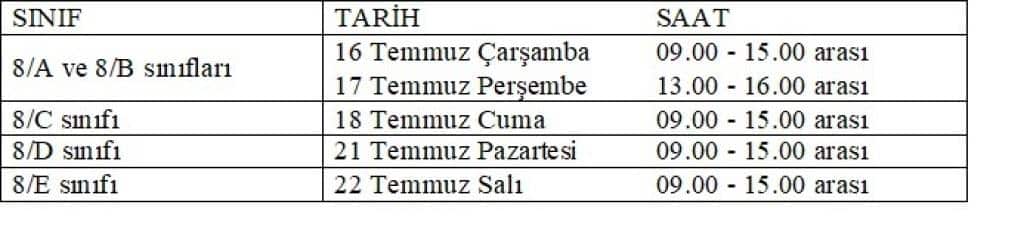 NOT: Sınıflara ayrılan tarihlerde gelemeyecek olan velilerimiz 23 Temmuz tarihinde okulumuza gelerek tercihlerini yapabilirler.